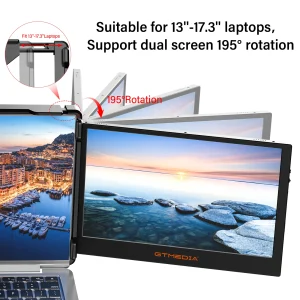 - Adjustable Viewing Angles – Dual screens rotate 195° for custom viewing and ergonomic comfort. (GTMEDIA)